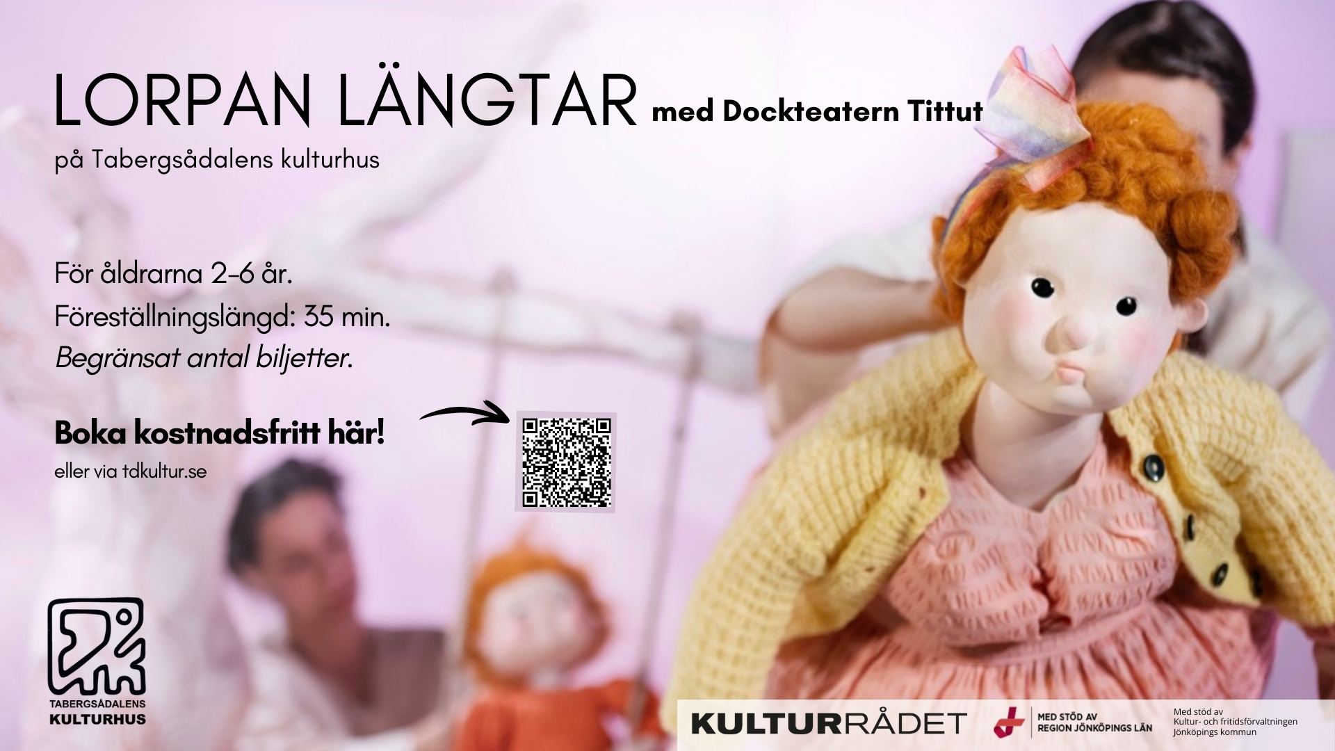 Fredag den 27 februari besöks vi av den hyllade Dockteatern Tittut som framträder med sin nyskrivna pjäs Lorpan längtar – en föreställning av Stina Wirsén och Ingalill Ellung!